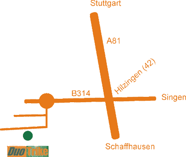 Von der A81 kommend, Ausfahrt Hilzingen (42). Dort Richtung Hilzingen und beim ersten Kreisverkehr die dritte Ausfahrt, Industriegebiet "Gießwiesen".